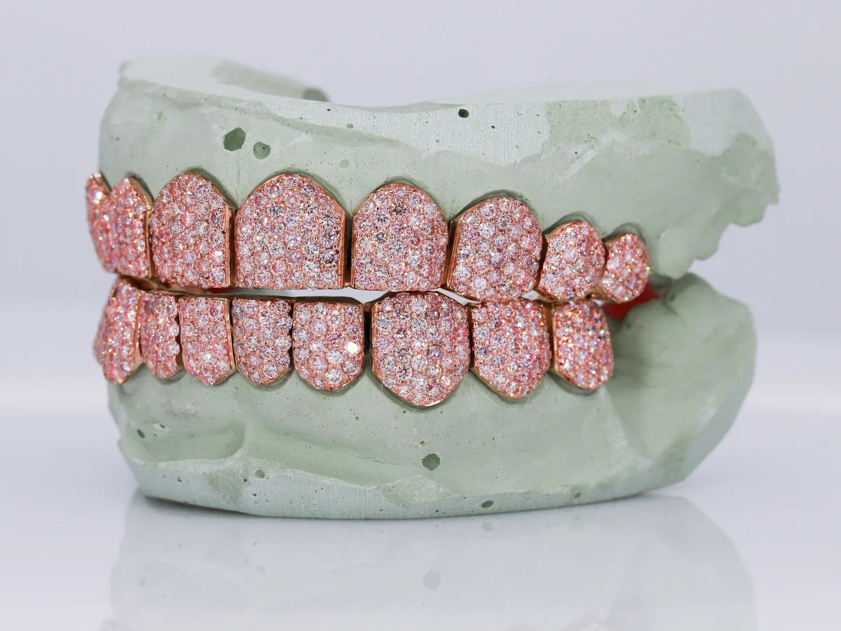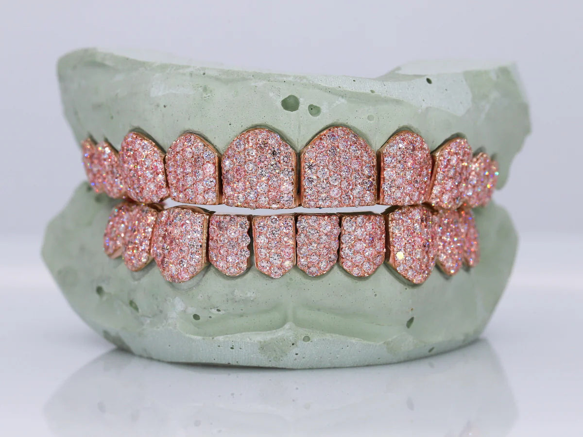 Introducing 8 on 8, the perfect accessory for stylish individuals. Made of 925 silver, these pink grillz add a touch of elegance and uniqueness to any outfit. Experience the glamour of luxury with 8 on 8.