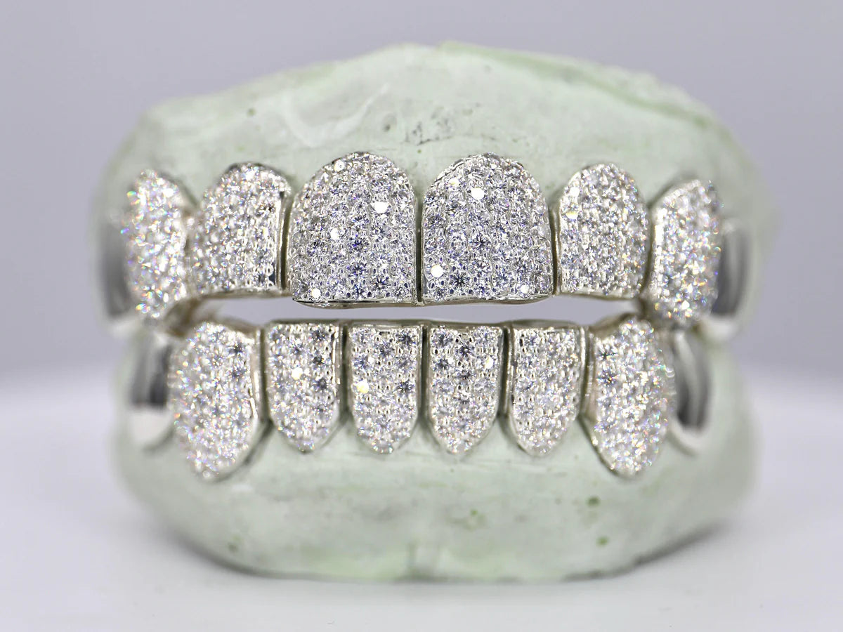 Crafted with expert precision, our custom 8 on 8 grillz are made from top-quality 925 silver. Blending style and durability, these grillz are sure to make a statement. Upgrade your smile with our best-selling set today!