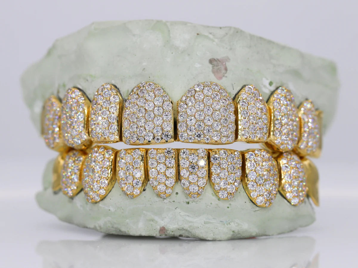 "Upgrade your smile with our 8on 8 925 grillz gold! Expertly crafted for a perfect fit, this is our top-of-the-line custom grill. Stand out from the crowd and make a statement with your smile."
