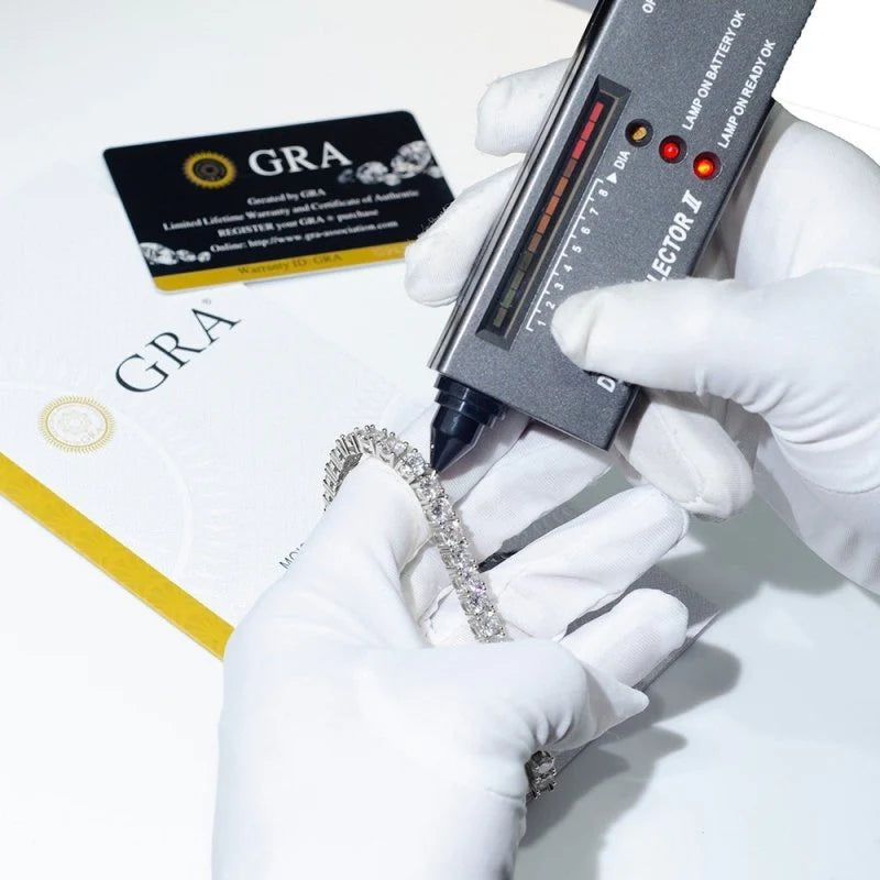 This elegant tennis bracelet features a stunning chain made with moissanite, a rare and brilliant gemstone that resembles diamonds. With its superior sparkle and durability, this bracelet is the perfect addition to any jewelry collection. Give the gift of timeless elegance to your loved one.
